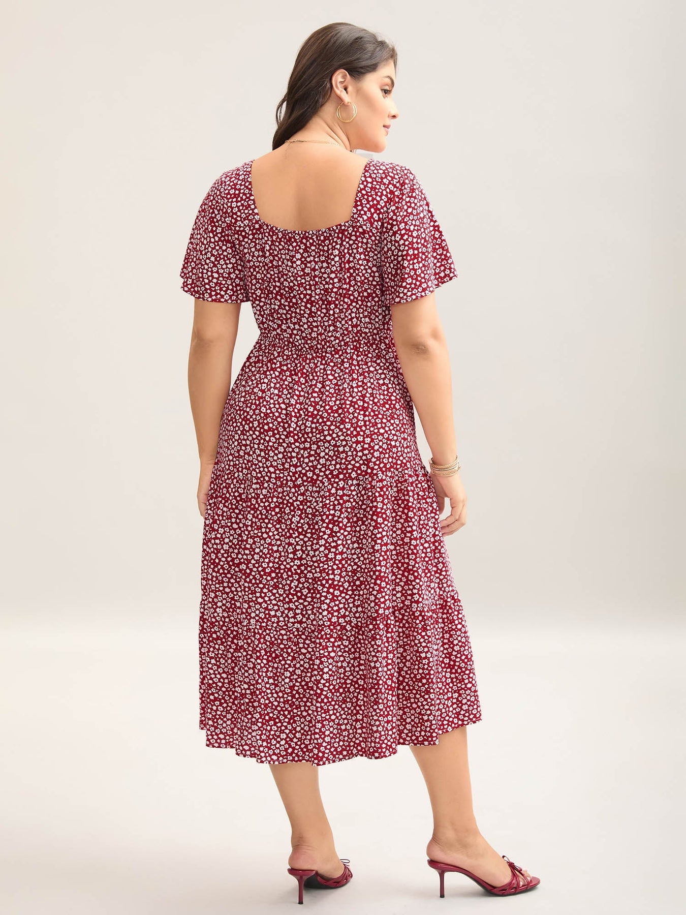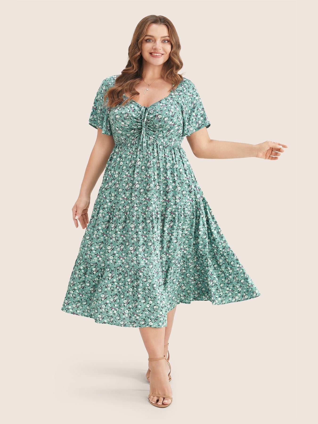 Ditsy Floral Sweetheart Drawstring Pocket Tiered Dress