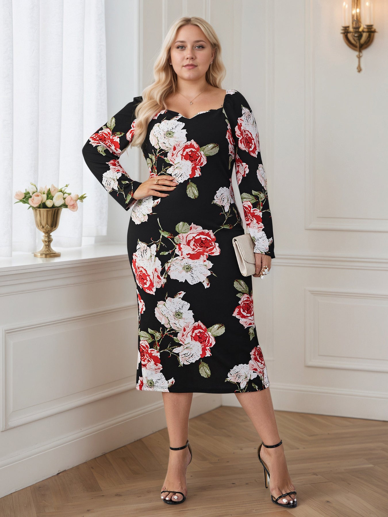 Get ready to turn heads in this Floral Long Sleeves Plus Size Dress! With its eye-catching floral design and flattering long sleeves, this dress is perfect for any bold fashionista who loves to take risks. Whether you're hitting the town or just want to make a statement, this dress will add a touch of adventure and excitement to any occasion!